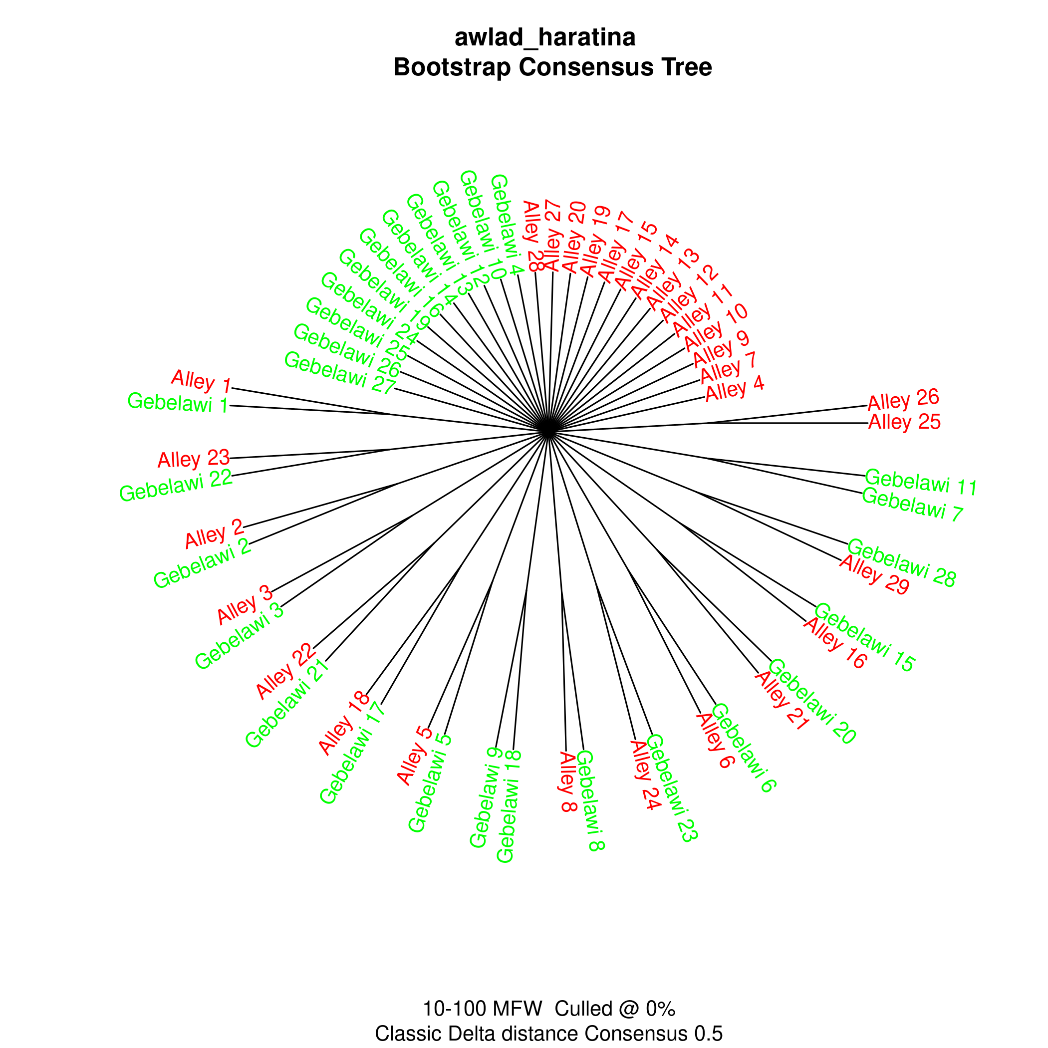 | No. of words | Gebelawi | Alley | ||