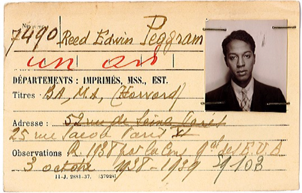 In September 1938, Reed Edwin Peggram, a Black American doctoral student at Harvard, moved to Paris to study decadence in nineteenth-century French literature at the Sorbonne. Soon after his arrival, he went to Shakespeare and Company and subscribed to the lending library, joining a long list of American expatriates in Paris who had made the pilgrimage to the famous bookshop on the Left Bank. In this article, I analyze the books he borrowed.
