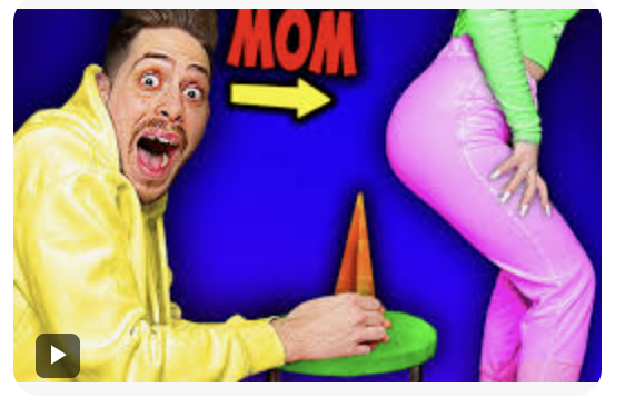 Another group of pranks, meanwhile, were similarly gentle, but in a different respect: these pranks, more skit than documentary, offered not even a pretense of reality. On the YouTube channel Tsuriki show, for example, two core performers, Vova and Anya, perform pranks of this variety, in an overtly artificial style. In one—in which both creators speak in the form of a comedic, record-scratching sound effect—Anya tricks Vova into believing that he has ripped his pants (Figure 4).13 In another, Anya sneaks sweets behind Vova’s back, by pulling a comically large collection of candy from her bra.14 TikTok pranks often conformed to this pattern. In one, two adolescents, after being tricked into kissing, bat eyelashes in cartoonish fashion (Sky and Tami);15 in another, a boy narrates—in the third person—his clever plot to avoid his mother’s demands (Keemokazi).16 The TikToker “Wigofellas” specializes almost entirely in hyperreal, cartoonish practical jokes (Figure 12). Rather than closely resembling reality-TV precursors, these pranks more directly harken back to vaudeville or early cinema slapstick. More analysis would be required to determine whether these gentle types of pranks have responded, if not to the abundance, then to the bad publicity surrounding edgier digital pranks.